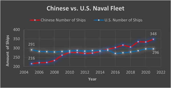 China’s military is growing at an enormous rate. Their Navy is larger than ours, their nuclear arsenal is set to quadruple in size in the next ten years.